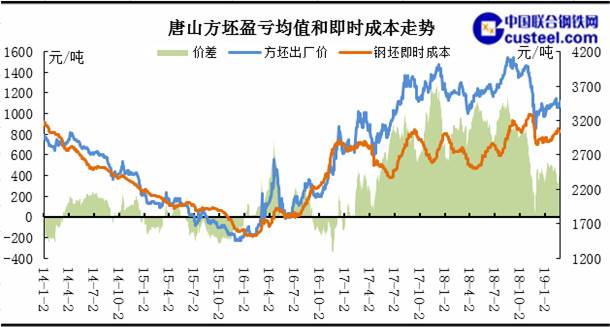 隨著去年11月份下旬鋼價(jià)大幅暴跌以后,普鋼坯生產(chǎn)利潤由千元跌回百元,長期維持在200-500元/噸的水平。據(jù)調(diào)查,目前唐山民營企業(yè)煉鋼利潤相對豐厚,國營企業(yè)煉鋼利潤相對較低。由于煉鋼利潤尚可,鋼廠生產(chǎn)相對積極,粗鋼產(chǎn)量持續(xù)高位。隨著后期置換產(chǎn)能釋放,資源投放量勢必增加,加劇區(qū)域內(nèi)市場價(jià)格波動(dòng)。