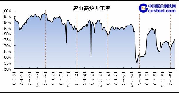 春節(jié)假期過后,唐山高爐復(fù)產(chǎn)相對積極。尤其去年采暖季實(shí)施差別限產(chǎn),隨著采暖季即將結(jié)束,唐山限產(chǎn)的高爐逐漸復(fù)產(chǎn)。另外,唐山高爐平時(shí)的正常檢修和復(fù)產(chǎn)在本月也表現(xiàn)的較好,復(fù)產(chǎn)情況較多,帶動(dòng)開工率持續(xù)上升。在豐南縱橫1#高爐點(diǎn)火順利出鐵的情況下,唐山地區(qū)進(jìn)入產(chǎn)能置換期的后半段——置換產(chǎn)能投產(chǎn)階段,隨著3月初豐南縱橫4#高爐和3月中旬首鋼京唐3#高爐點(diǎn)火,唐山地區(qū)粗鋼產(chǎn)量勢必將會(huì)增加。